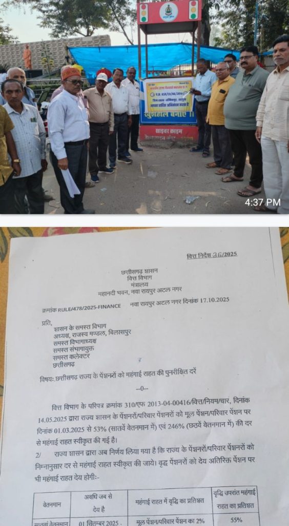 आज घड़ी चौक पर भारतीय राज्य पेंशनर्स महासंघ छत्तीसगढ़ के प्रांतीय निकाय के आव्हान पर अंबिकापुर जिला मुख्यालय में भी महंगाई राहत भत्ता आदेश की प्रति की होली जलाकर विरोध प्रकट किया तथा छत्तीसगढ़ सरकार से आग्रह किया कि महंगाई राहत भत्ता केंद्र सरकार के देय तिथी से देने की मांग किया गया साथ ही यह भी मांग किया गया कि अभी तक के महंगाई राहत भत्ता के बचे हुए एरियर्स राशि का भुगतान अविलंब कर पेंशनरों को राहत प्रदान करे सरकार।